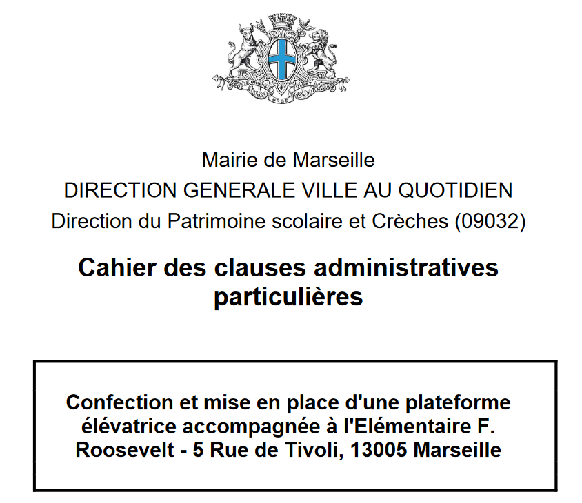 1er mars 2024 : Appel d’offres lancé (réponse pour le 1er avril) (CCTP CCAP)